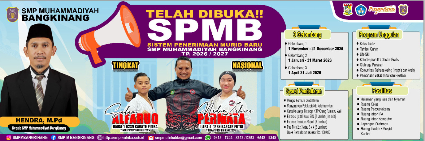 SPMB (SISTEM PENERIMAAN MURID BARU) SMP MUHAMMADIYAH BANGKINANG TP 2026/2027